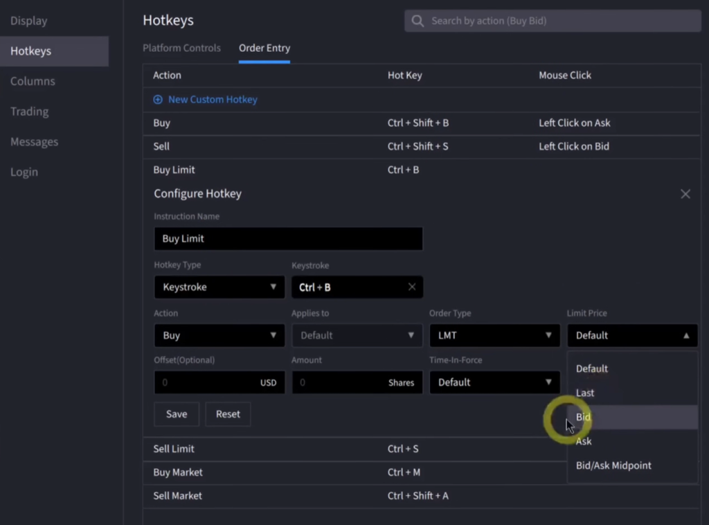 Trading Hotkeys Configuration